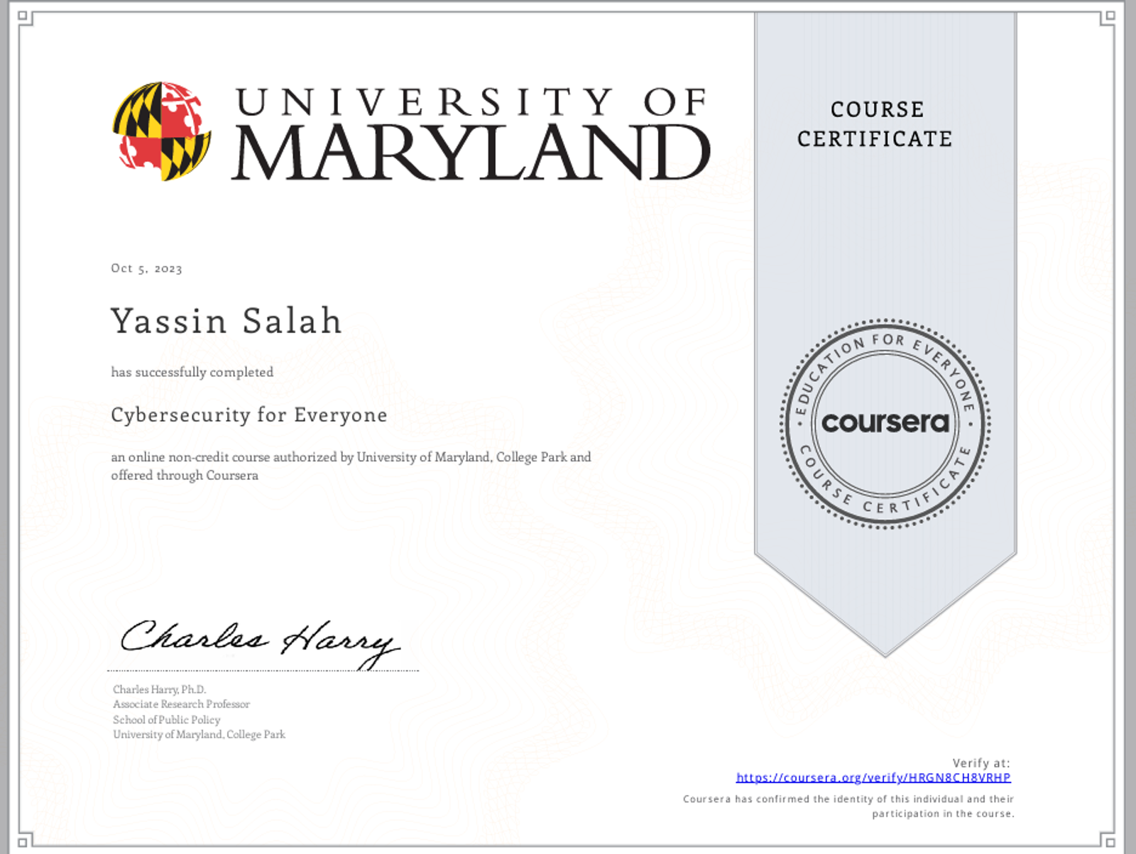 Foundational certificate introducing core principles of cybersecurity. Covers the CIA triad (confidentiality, integrity, availability), common attack types, basic defensive concepts, and security best practices. Designed to build awareness of how threats operate and how security measures protect systems and data. Key skills: threat awareness, security fundamentals, risk concepts, introduction to defense & attack surface.